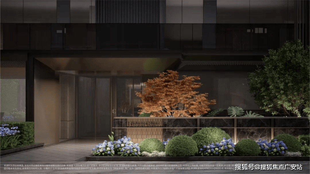 为了给业主一个完美的归家仪式感,项目设计了长约35m宽,约5.1m高奢阔门头,且有名贵黑松迎客。酒店式入户大堂的营造,精选雪山飞狐奢石,高山流水奢石、星白奢石等奢材。